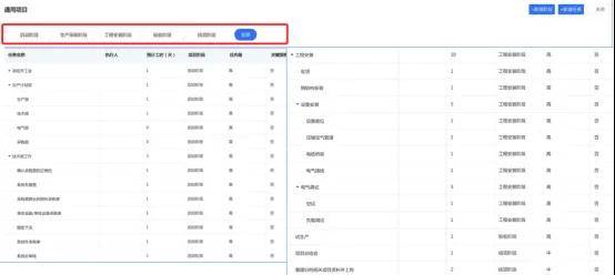 项目阶段:自定义项目阶段(启动、生产采购、工程安装、验收、结项),并启用不同的模板,多个阶段子动作子流程,设置不同的字段,管理该项信息,让员工清楚什么样的阶段该怎么对待,花多少精力。