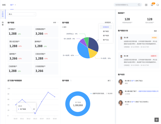 通过CRM平台,实现业务过程和结果的数字化,形成各类报表,建立以数据为支撑的业务体系,落地可视、可管、可控的数字化经营体系。