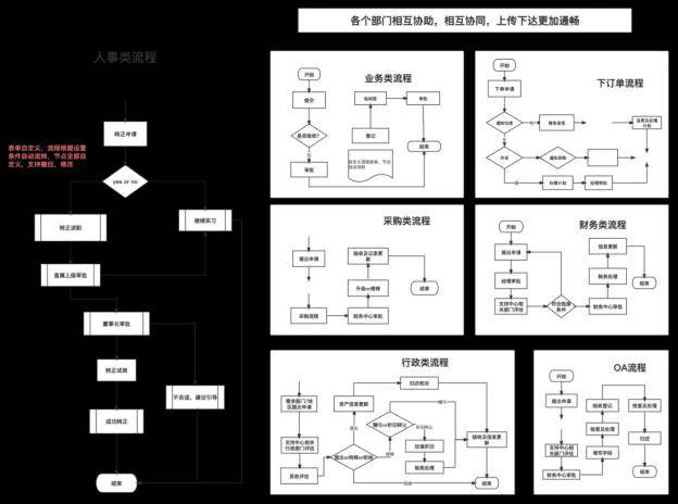 流程:通过对流程执行过程的管理和分析,实现对企业(人事类、行政类、销售类、服务类、项目类、财务类······)全公司各级流程及表格的规范标准,销售下单后自动同步至生产排期,关键节点留痕,避免交期冲突,提升企业业务管理的能力和效率
