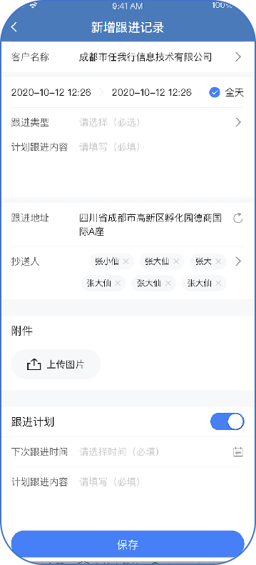 销售在客户拜访结束后随时随地在手机端按照标准的模板填写沟通跟进记录,做好客户分类和意向判断,销售主管可随时监控团队进度。同时,根据不同类型的客户,销售会设置不同的跟进周期。对于一般意向的客户,会设置为1周跟进一次,通过智能提醒功能,避免经常错失商机。