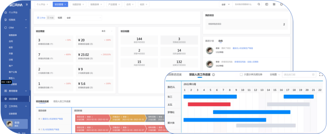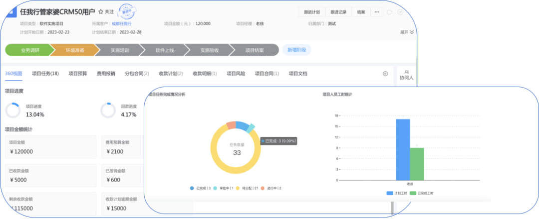 管家婆CRM以项目进度为主线,成本控制为核心,打造了一个从市场营销、项目执行、交付一体化的项目管理系统。